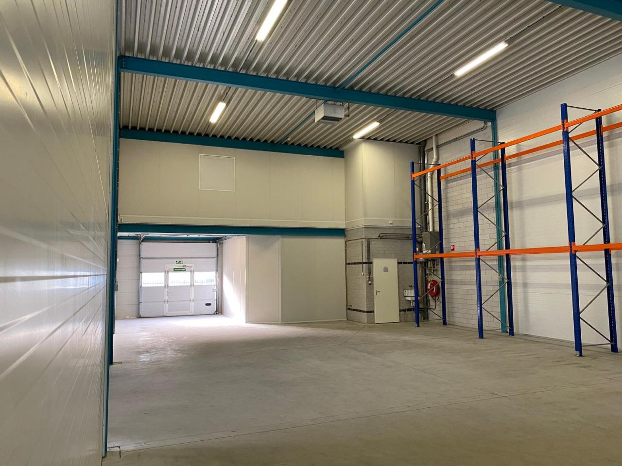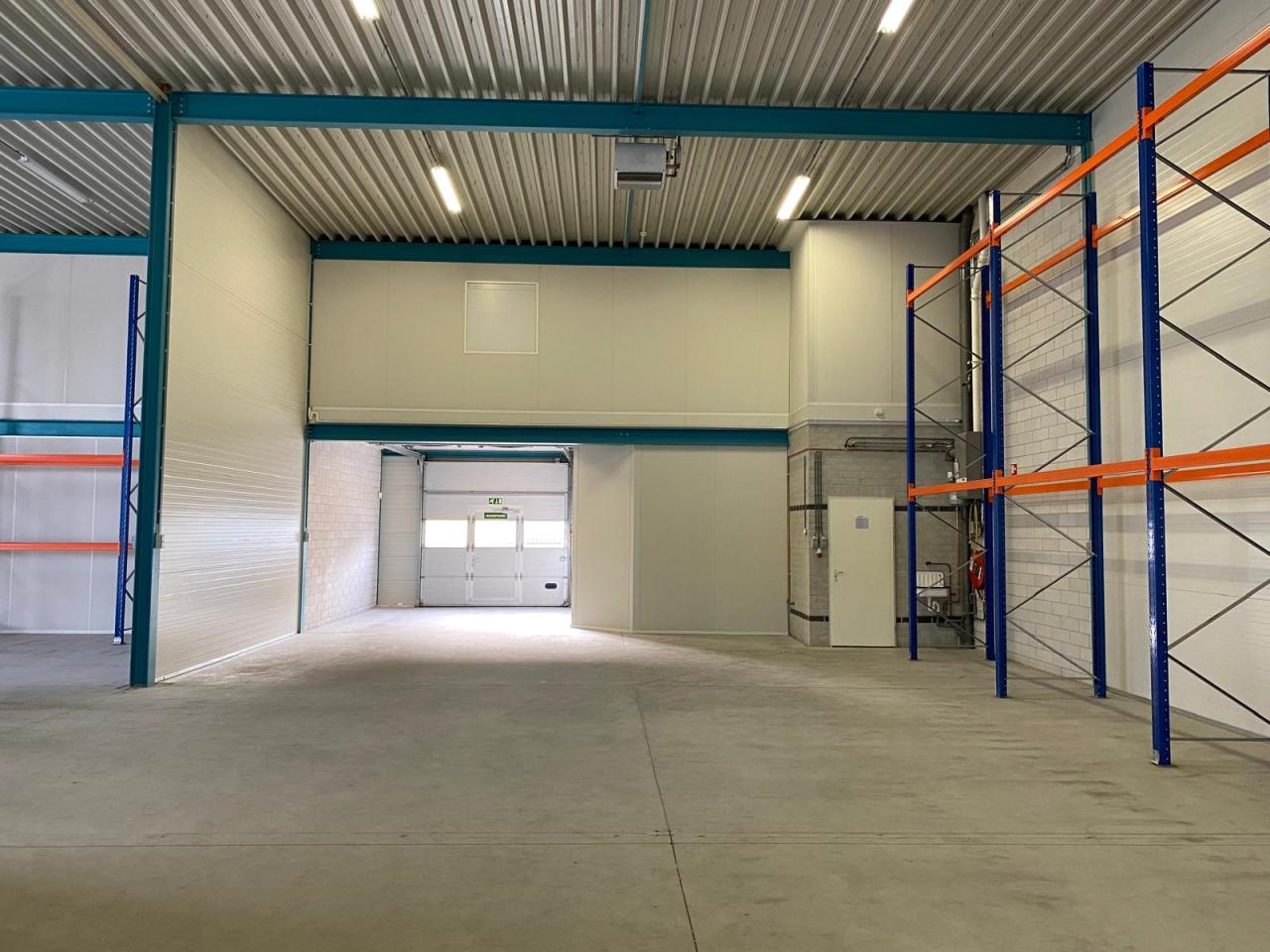 - bedrijfsruimte / magazijn, geïsoleerde systeemwanden en schoonmetselwerk, gevlinderde vloer, plafond vv. inbouwarmaturen;