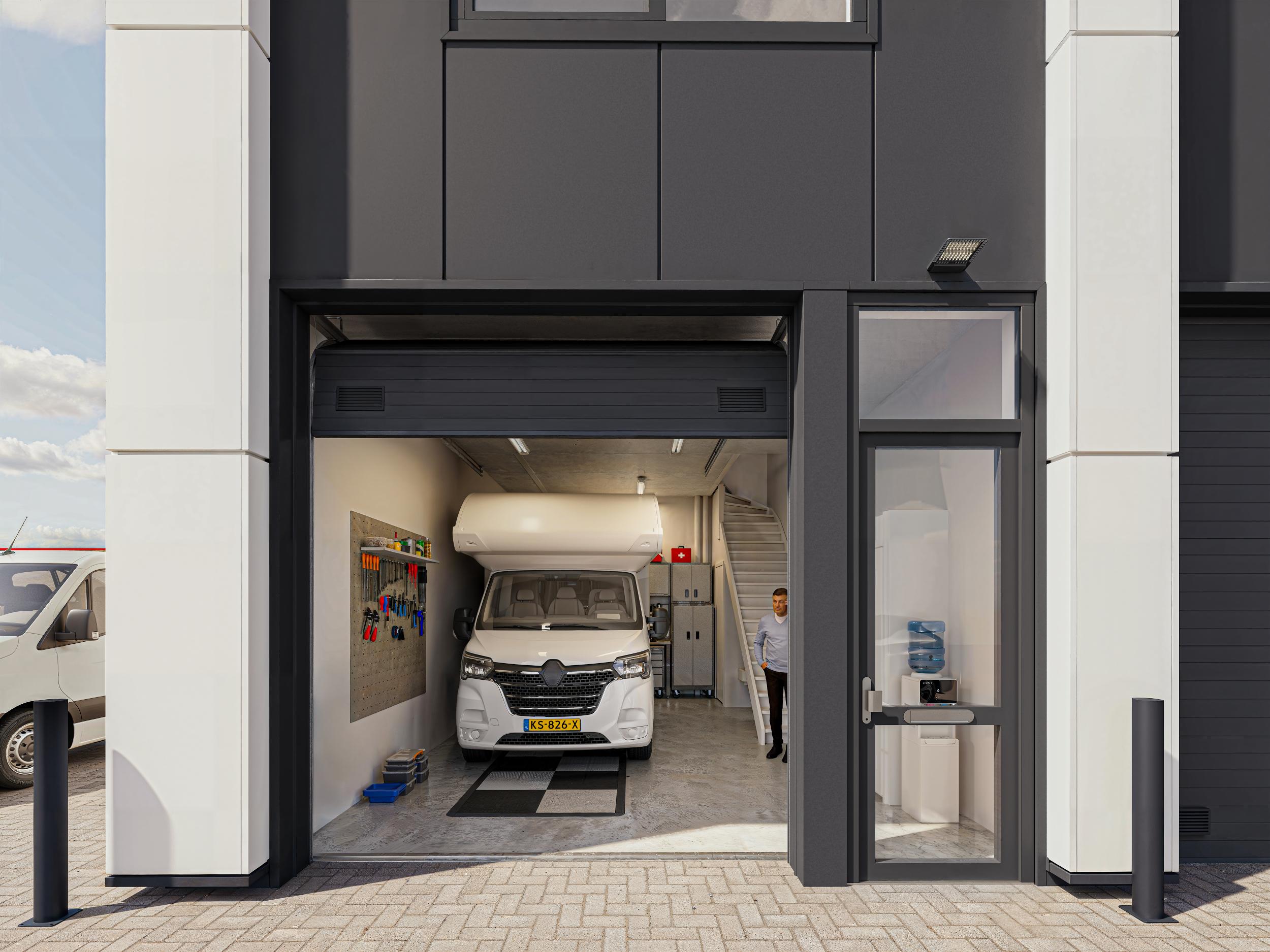 - Standaard voorzien van een loopdeur en een overheaddeur.